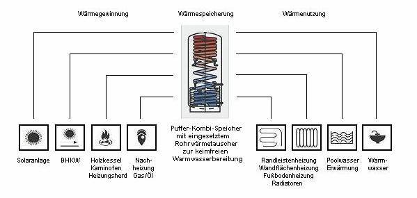 Um die Wärmeenergie von Solaranlagen, Heizkraftanlagen und Holzheizkesseln optimal zu nutzen ist grundsätzlich der Einsatz von Pufferspeichern notwendig.